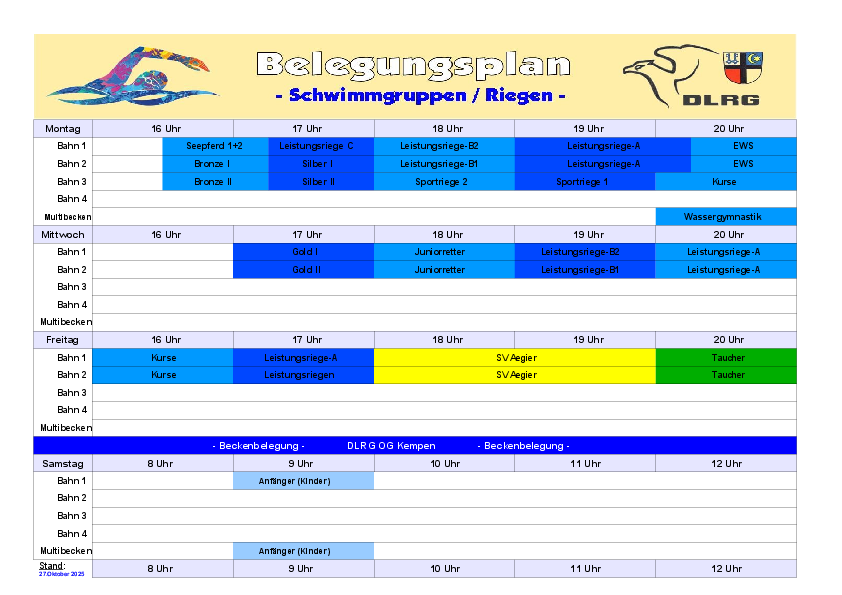 | Montag | 16:30 Uhr - 17:15 Uhr | Seepferdchengruppe I & II |